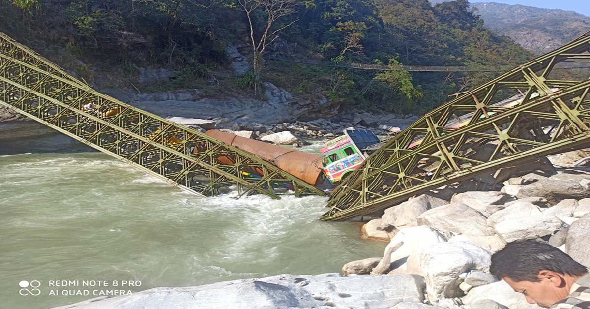 निर्माणाधीन इप्सुवा हाइड्रो पावर कम्पनीको निर्माण सामाग्री लिएर गएको तीन वटा लोवेट ट्रक पुल भाँची पछि अरुण नदीमा खसेको कार्यपालिका सदस्य याम्फुले बताए । ट्रकमा सवार चालक र सहचालक भने सकुलनै रहेको छन् ।अरुण नदीको बेलिब्रिज भाँचिएपछि आवतजावत ठप्प भएको छ । पुलको भन्दा बढी क्षमताभन्दा सामाग्री बोकेर एकै पटक तीन बटा ट्रक तर्ने क्रममा फुल भाँचिएको कार्यपालिका सदस्य याम्फुले बताए । तीन वटै लोवेट ट्रक हाइड्रो पावरको निर्माण सामाग्री लिएर वालुङतर्फ गएका थिए । दुई वटा रड र एउटामा आयोजनाको ट्रनेलको पाइप लिएर ट्रकहरू आयोजना स्थल गएका थिए ।