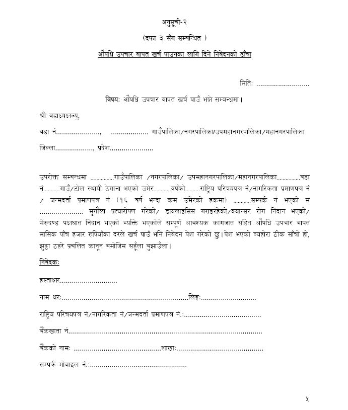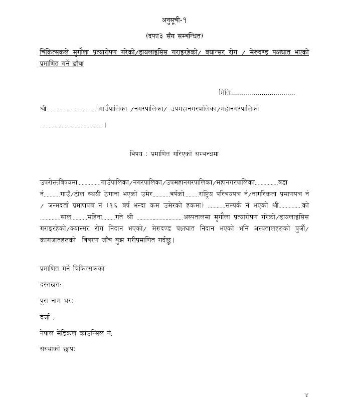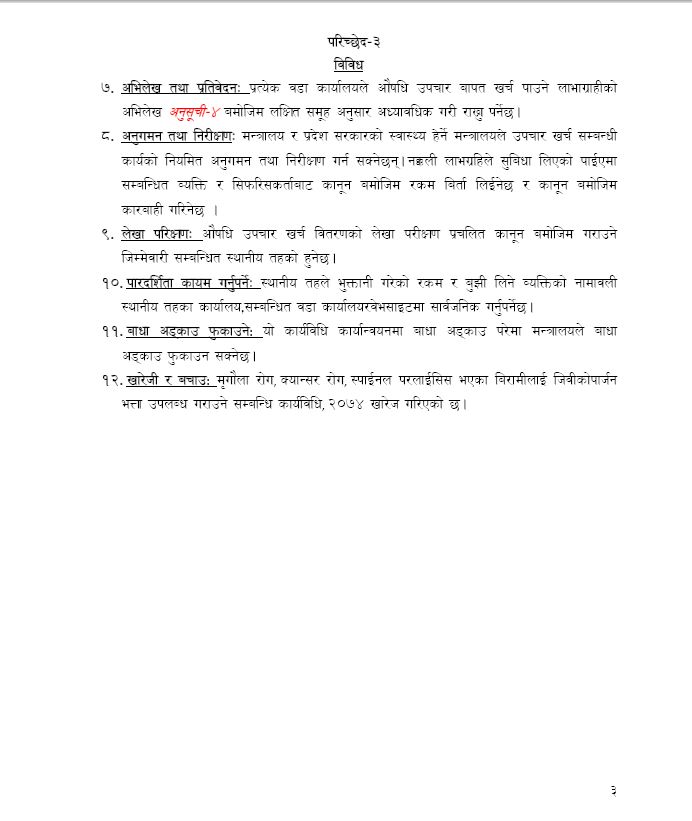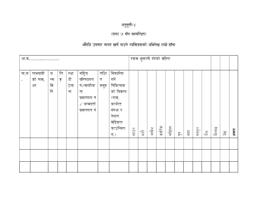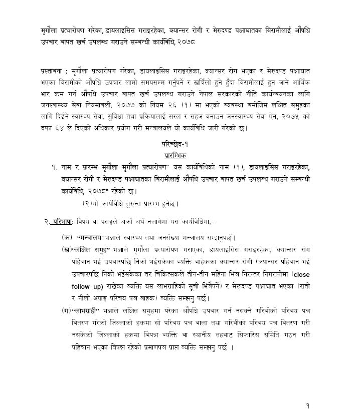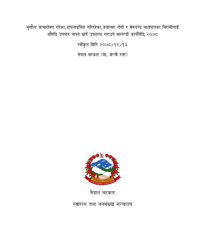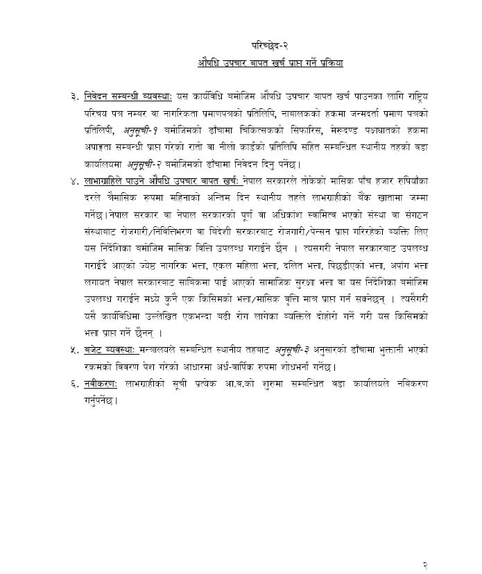 मिर्गौला, क्यान्सर र मेरुदण्ड पक्षघातका बिरामीले मासिक ५ हजार रुपैयाँ उपचार खर्च पाउने (कार्यविधि सहित )
