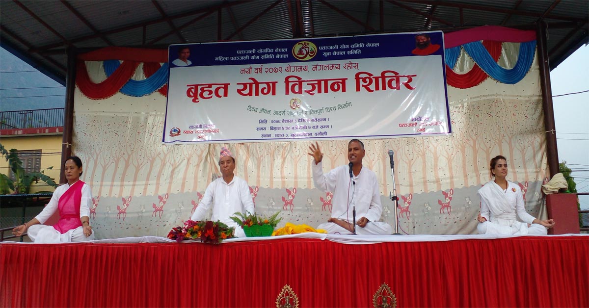 दमौली : पतञ्जली योग समिति तनहुँ आयोजन र व्यास नगरपालिकाको सहयोगमा दमौलीमा शनिवारदेखि निःशुल्क योग विज्ञान शिविर सुरु भएको छ । व्यास –३ स्थित दमौलीको खुल्ला मैदानमा सुरु भएको शिविर वैशाख ७ गतेसम्म सञ्चालन हुनेछ ।